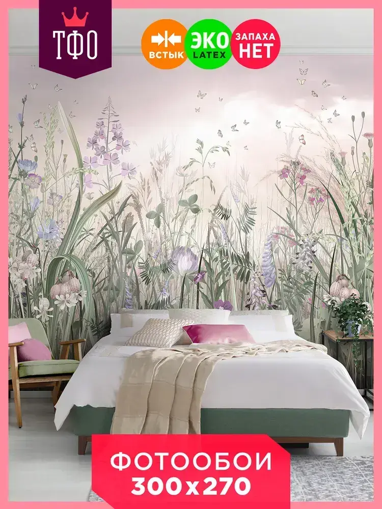 Топ Фотообои / Полевые цветы в пастельных оттенках / 300х270