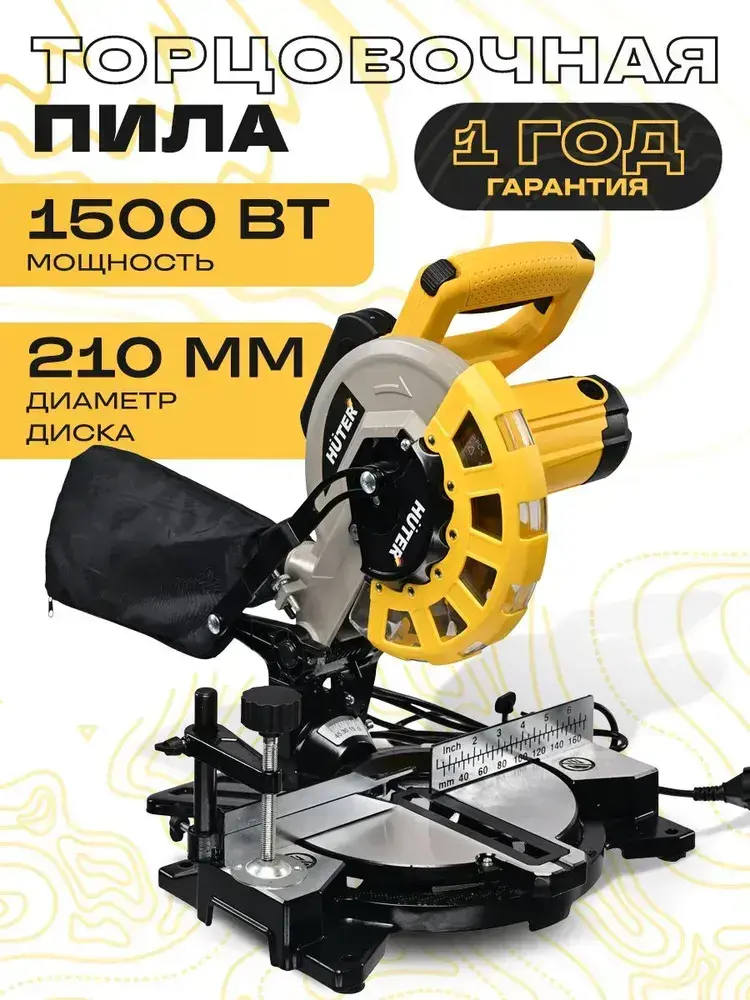 Торцовочная пила Huter по дереву и пластику 1500 Вт, диск 210 мм, 90г-60мм/45г-34ммПТ-1521 Huter.