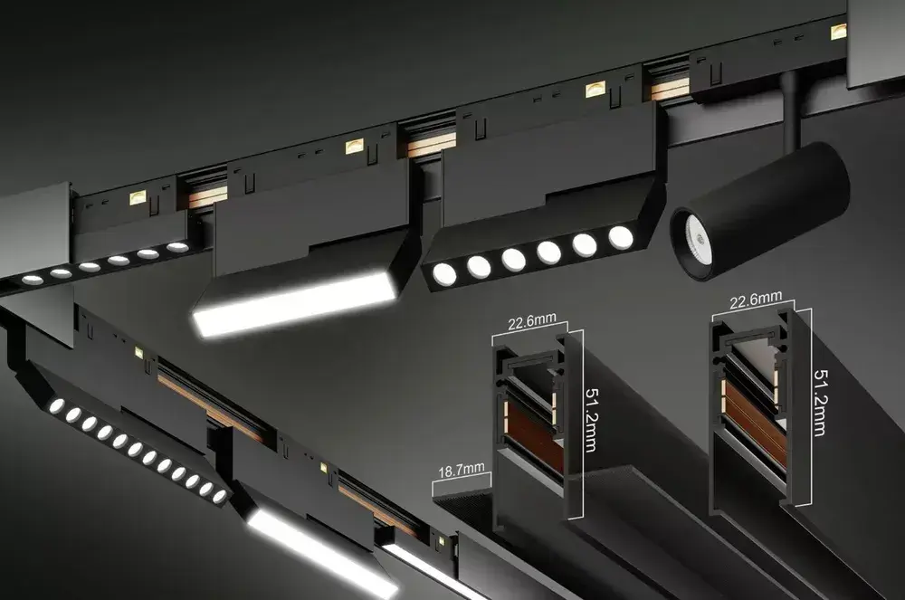 Трековая система освещения для натяжных потолков MAGNETIC S15 48V Чёрный шинопровод алюминиевый четырех-контактный низковольтный 4TRA 54x55x1500mm IP20 1,5 м / торцевые заглушки в комплекте