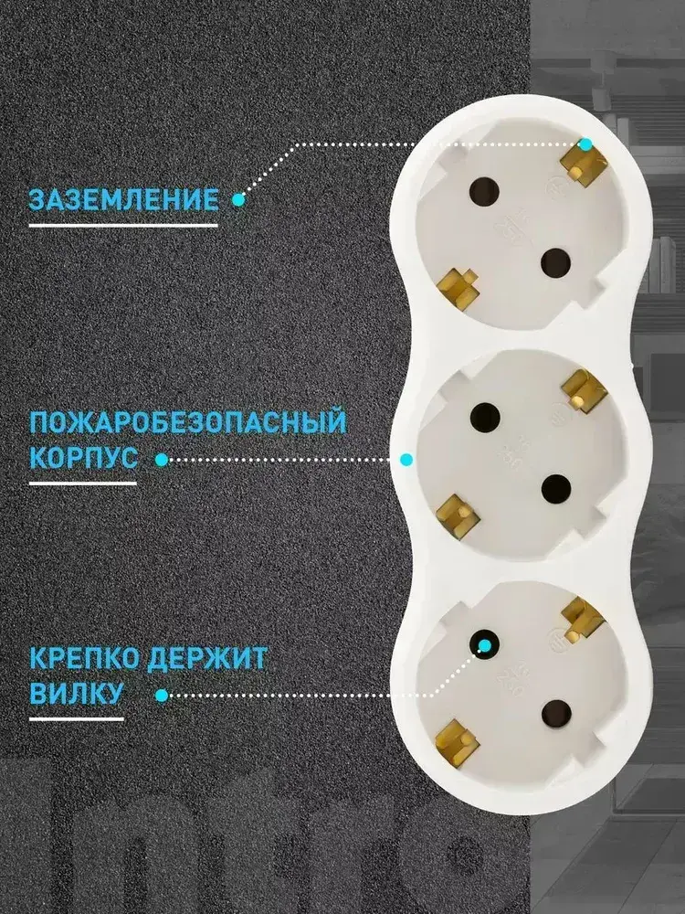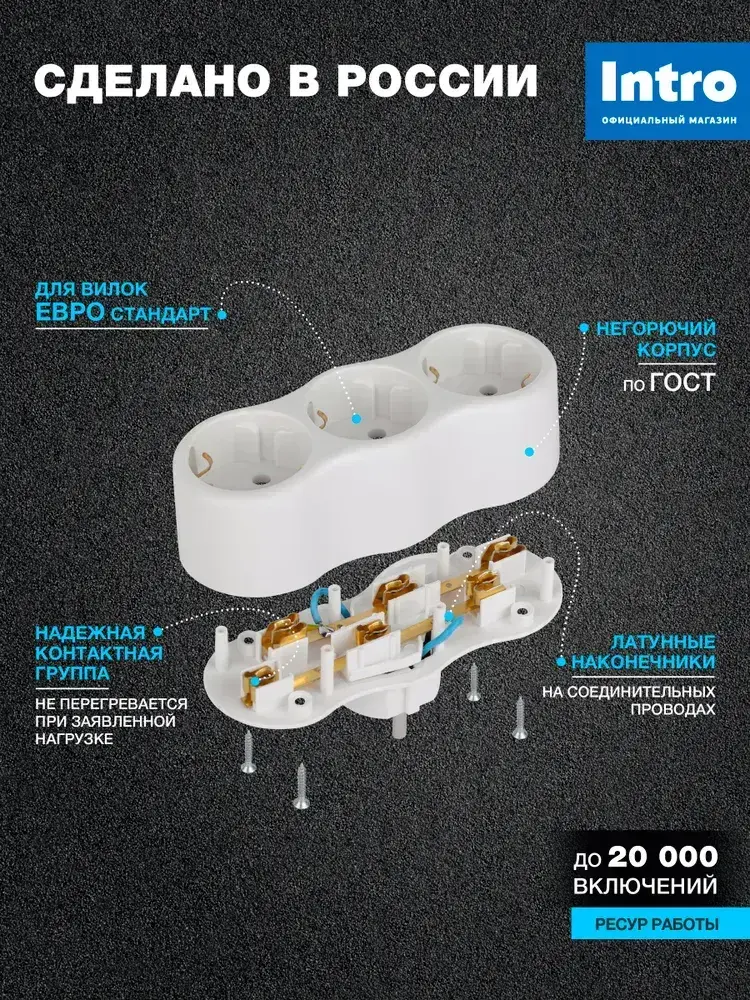 Тройник для розетки электрический Intro TR3e-W с заземлением 16А, белый