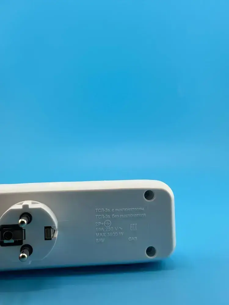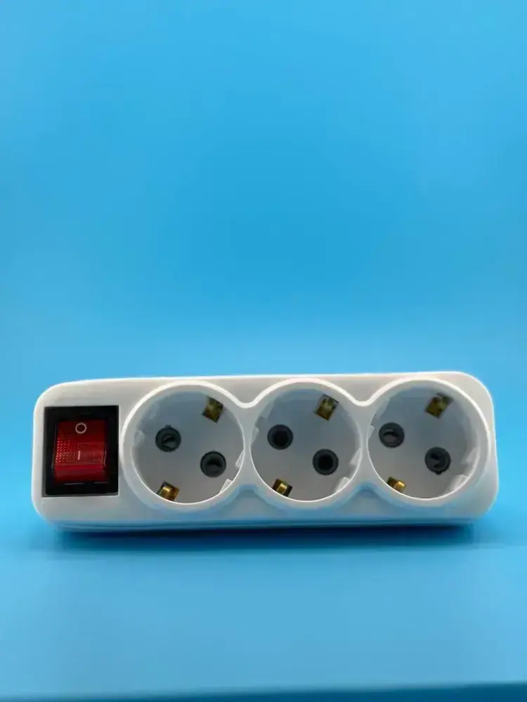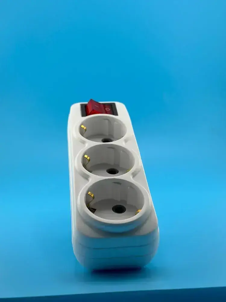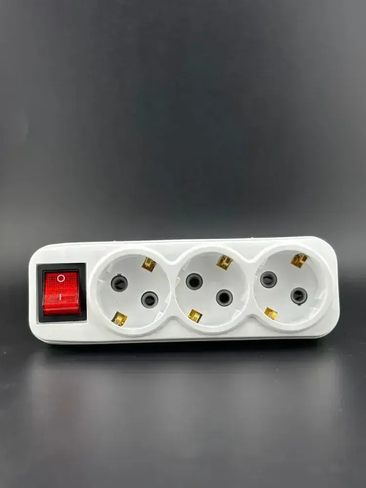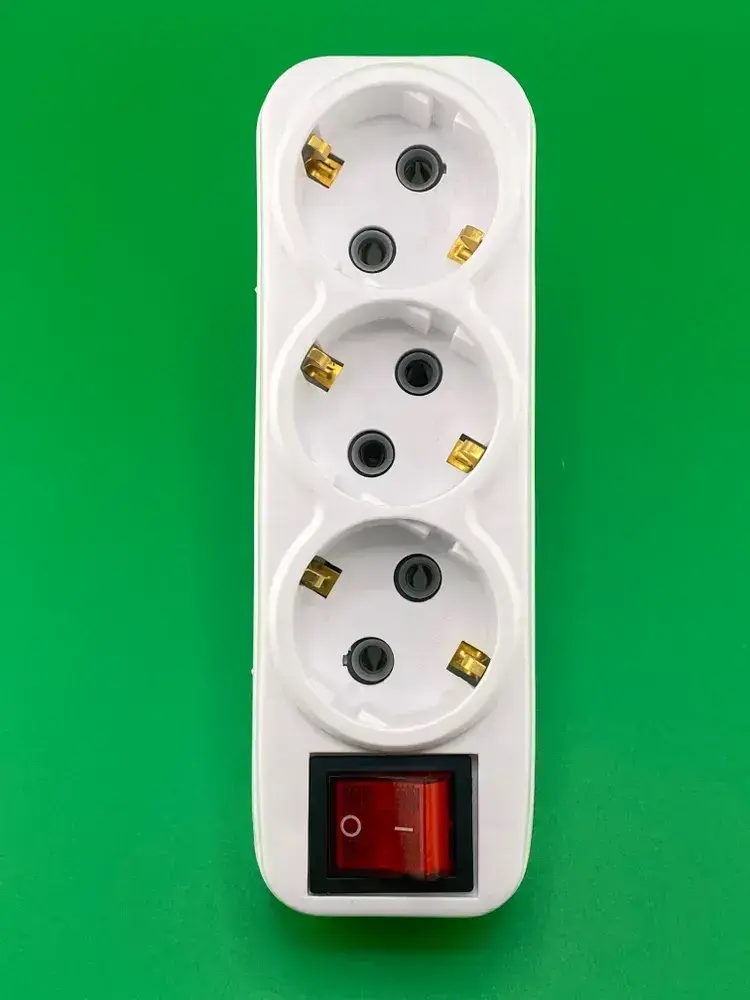 Тройник для розетки электрический с выключателем на 3 гнезда, Разветвитель в розетку 220 плоский с заземлением белый 16А
