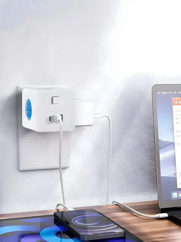 Тройник для розетки на 4 гнезда, 2 USB и 1 type C быстрая зарядка, разветвитель в розетку сетевой фильтр