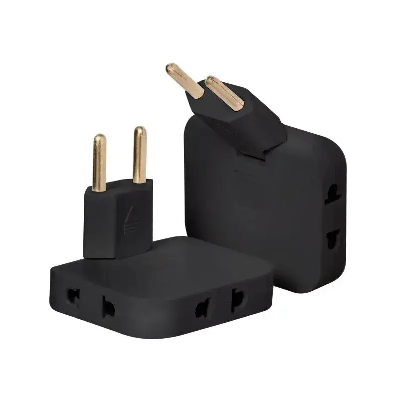 Тройник для розетки плоский поворотный, разветвитель 180 градусов, черный