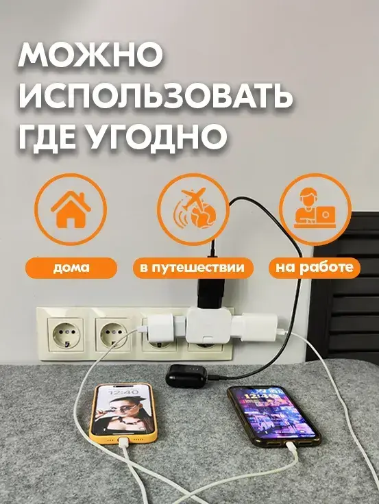 Тройник для розетки плоский поворотный - Разветвитель для розетки - Тройник переходник на евровилку с китайской вилки