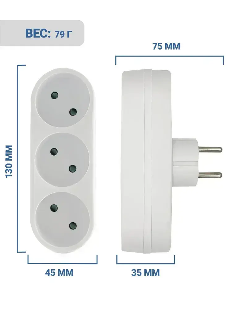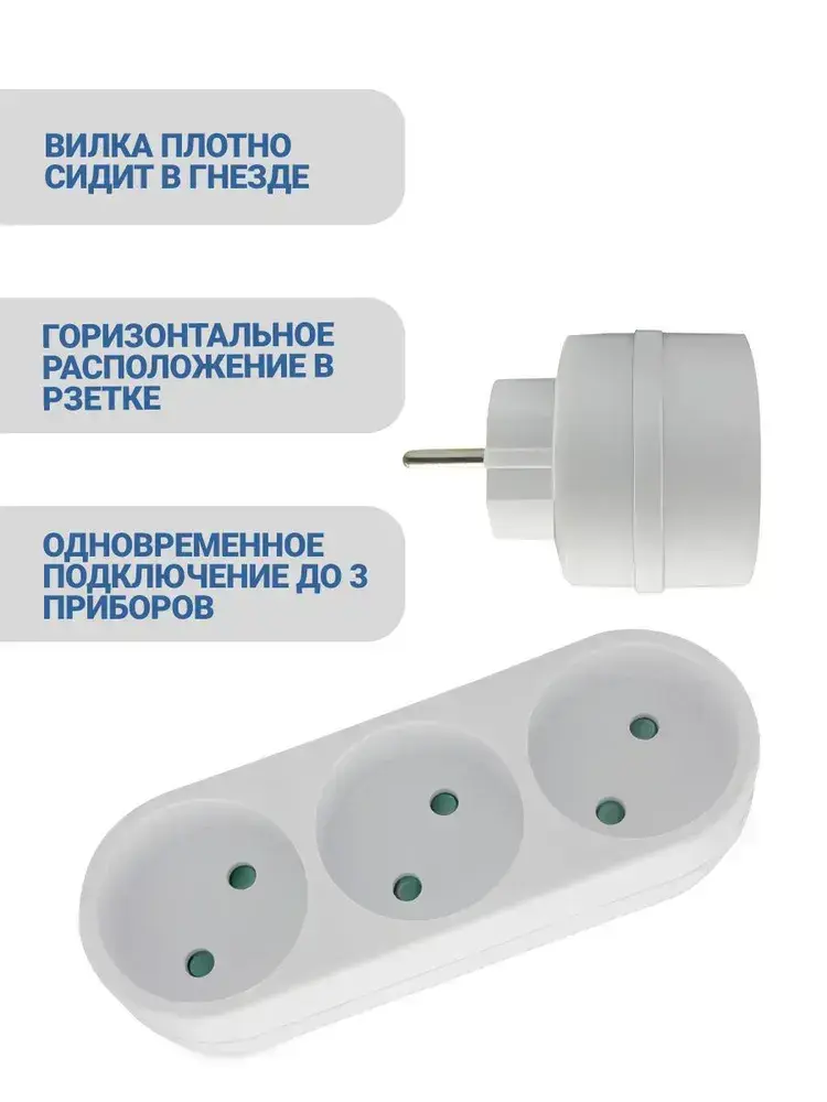 Тройник электрический линейный на 3 розетки 10А с защитными шторками