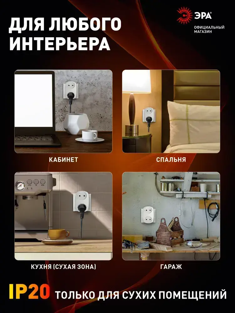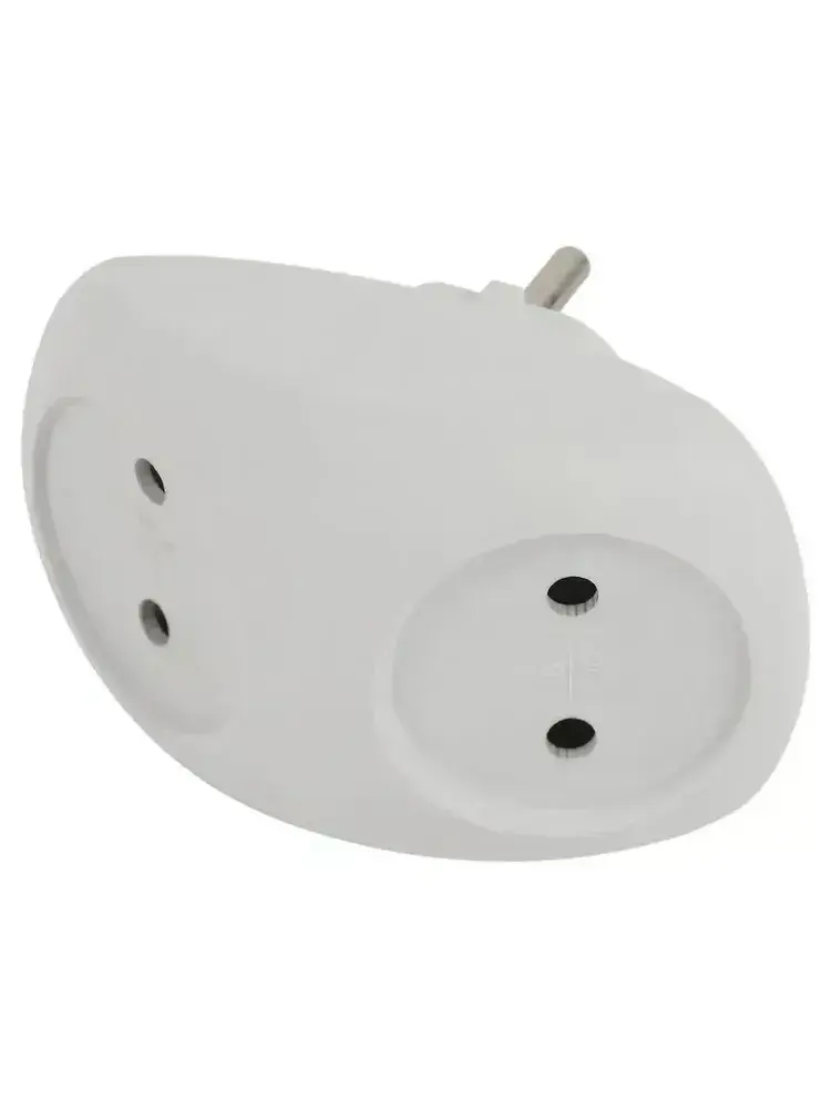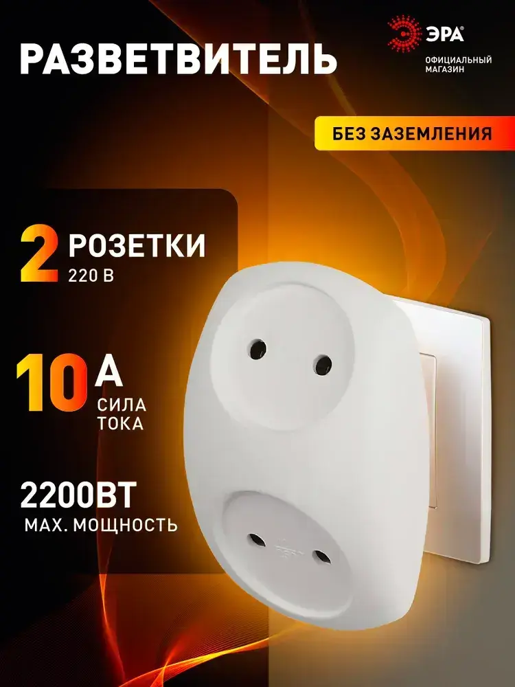 Тройник розетка электрический плоский SPx-2-W ЭРА / Разветвитель электрический без заземления, 2 розетки, 10А, белый