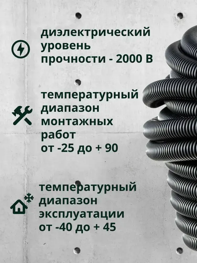 Труба гибкая гофрированная ПНД 16мм с протяжкой лёгкая (25м) чёрный