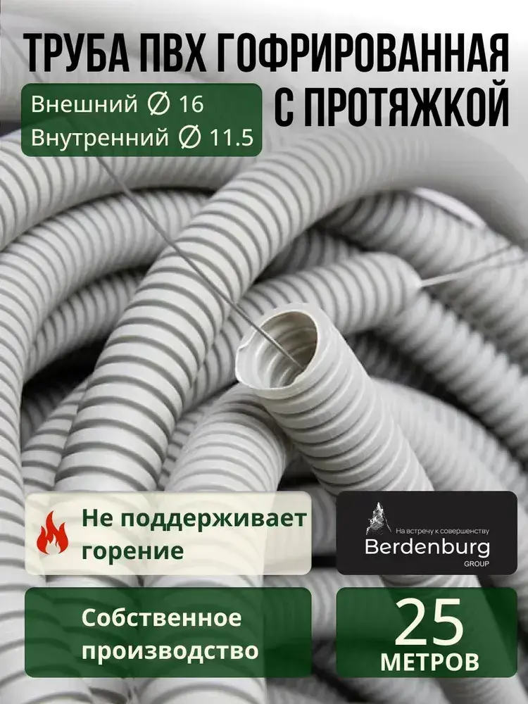 Труба гибкая гофрированная ПВХ 16мм с протяжкой лёгкая (25м) серый