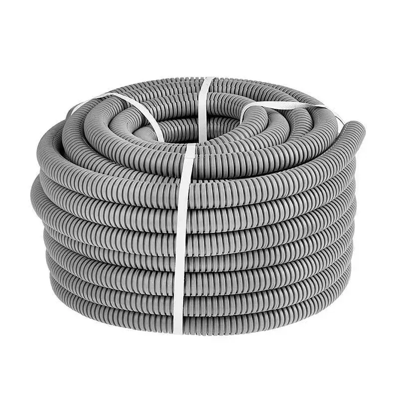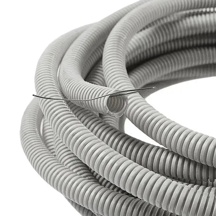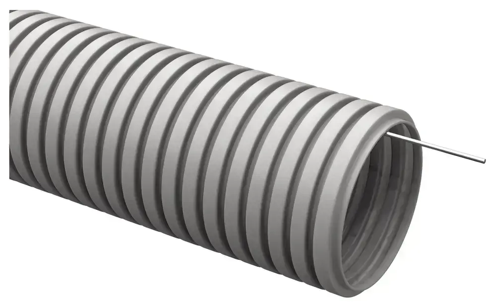 Труба гибкая гофрированная ПВХ 16мм с протяжкой лёгкая (50м) серый