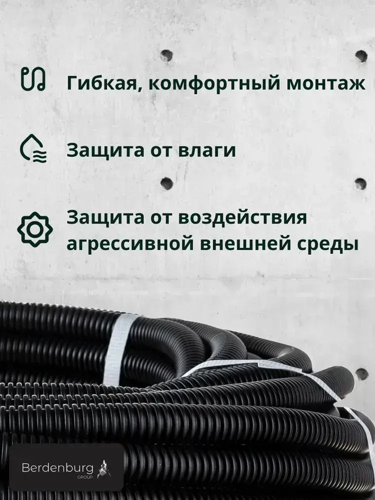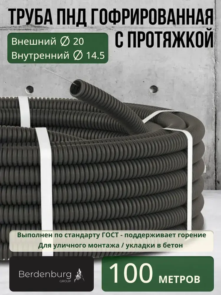 Труба гофрированная ПНД 20 мм гибкая легкая с зондом легкая 100 метров с протяжкой для прокладки кабеля и электропроводки