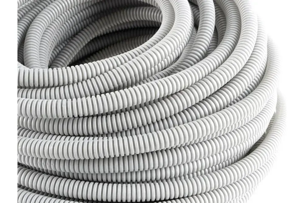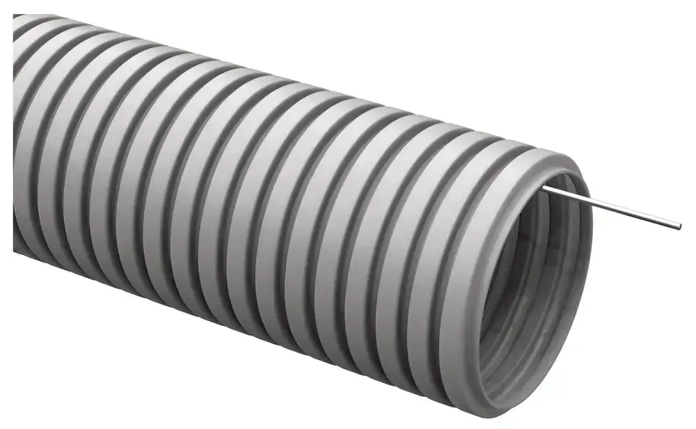Труба гофрированная ПВХ 20 мм гибкая легкая с зондом серая 25 метров с протяжкой для прокладки кабеля и электропроводки