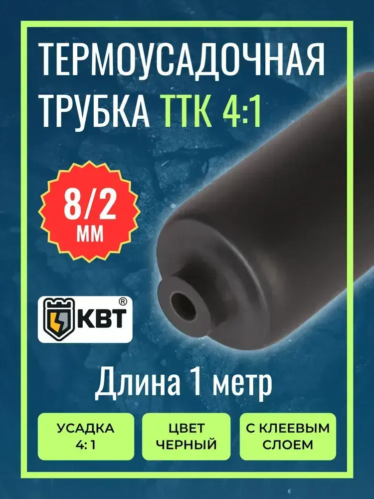 Трубка термоусадочная клеевая ТТК(4:1)-8/2 чёрная с коэффициентом усадки 4:1 (КВТ)