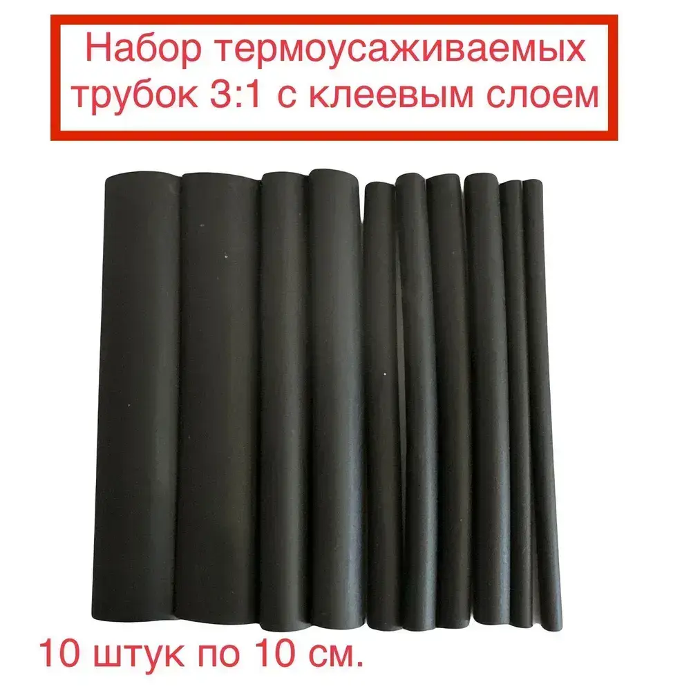 Трубка термоусаживаемая (клеевая), набор 10шт по 10см (3/4,8/6/9/12мм)