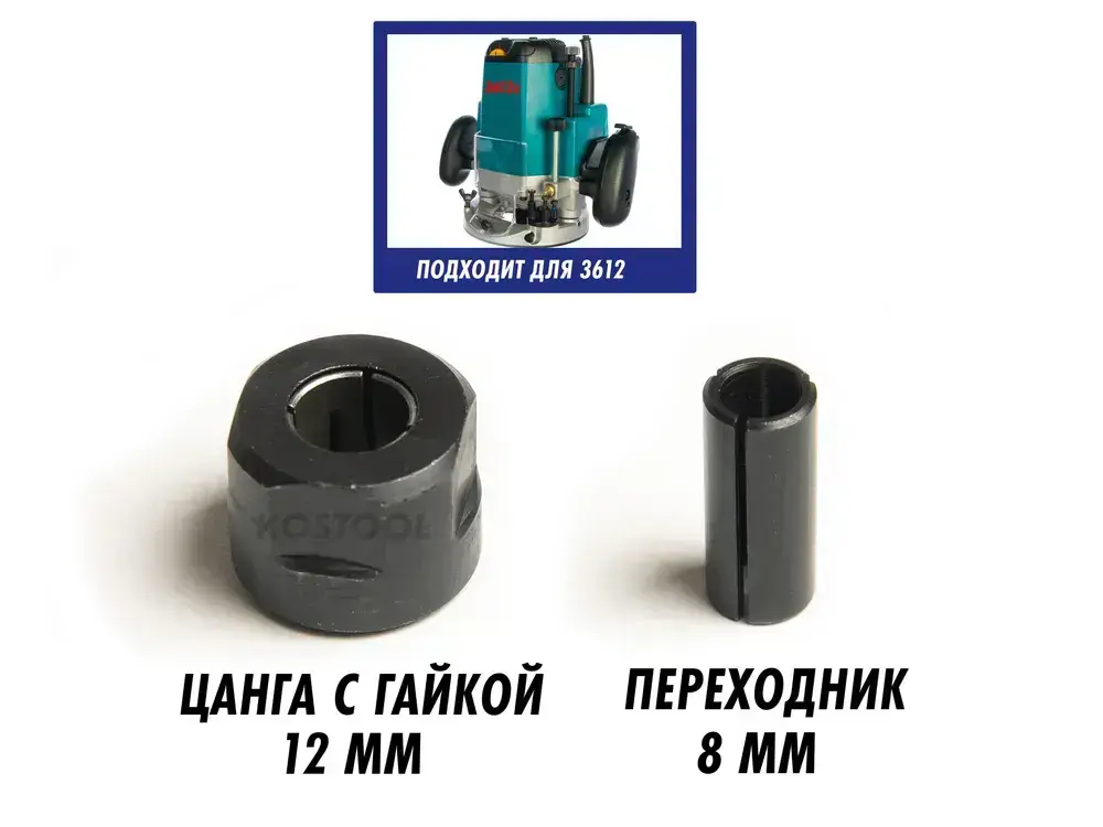 Цанга для фрезера 3612с 12 и 8 мм с гайкой