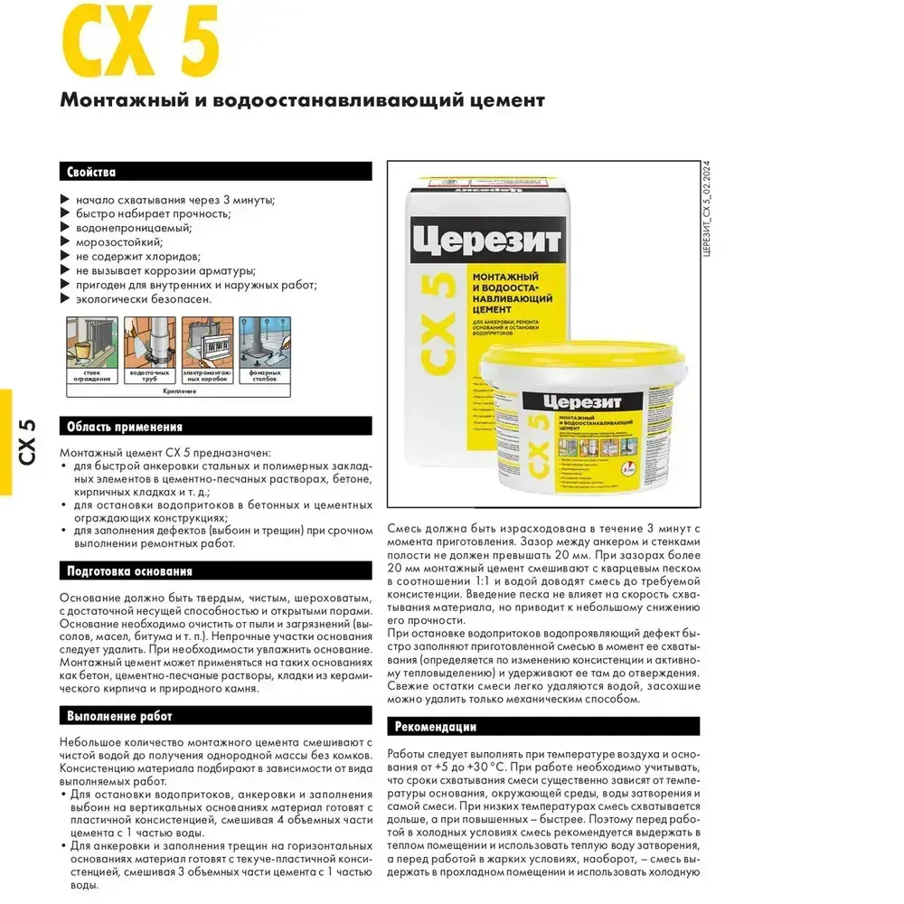 Цемент монтажный и водоостанавливающий ЦЕРЕЗИТ CX 5 2 кг