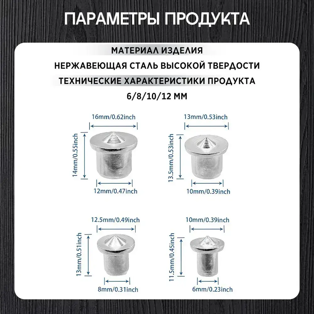 Центроискатель под шкант (столярная наколка, разметочный маркер) Набор 8шт/твердый