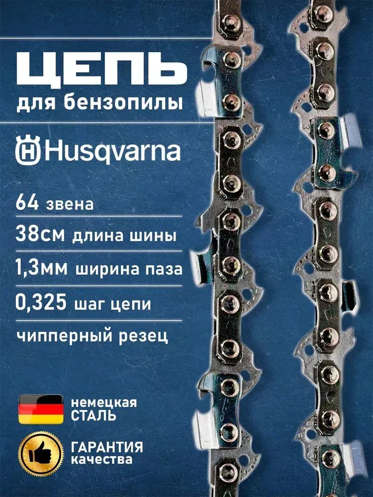 Цепь для бензопилы Хускварна Husqvarna 137 - 142, 64 звена, длина шины 38 см, шаг 0.325, паз 1.3 мм