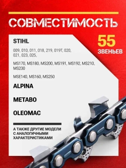 Цепь для бензопилы Штиль 180, 55 звеньев, 1.3 мм, шаг 3/8