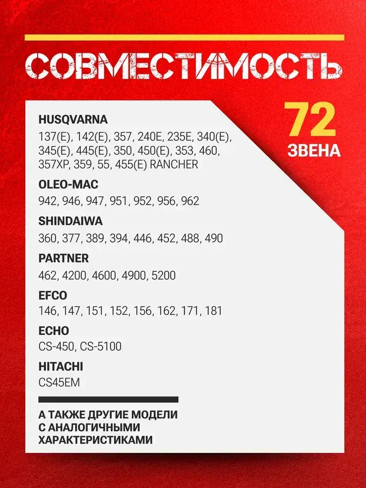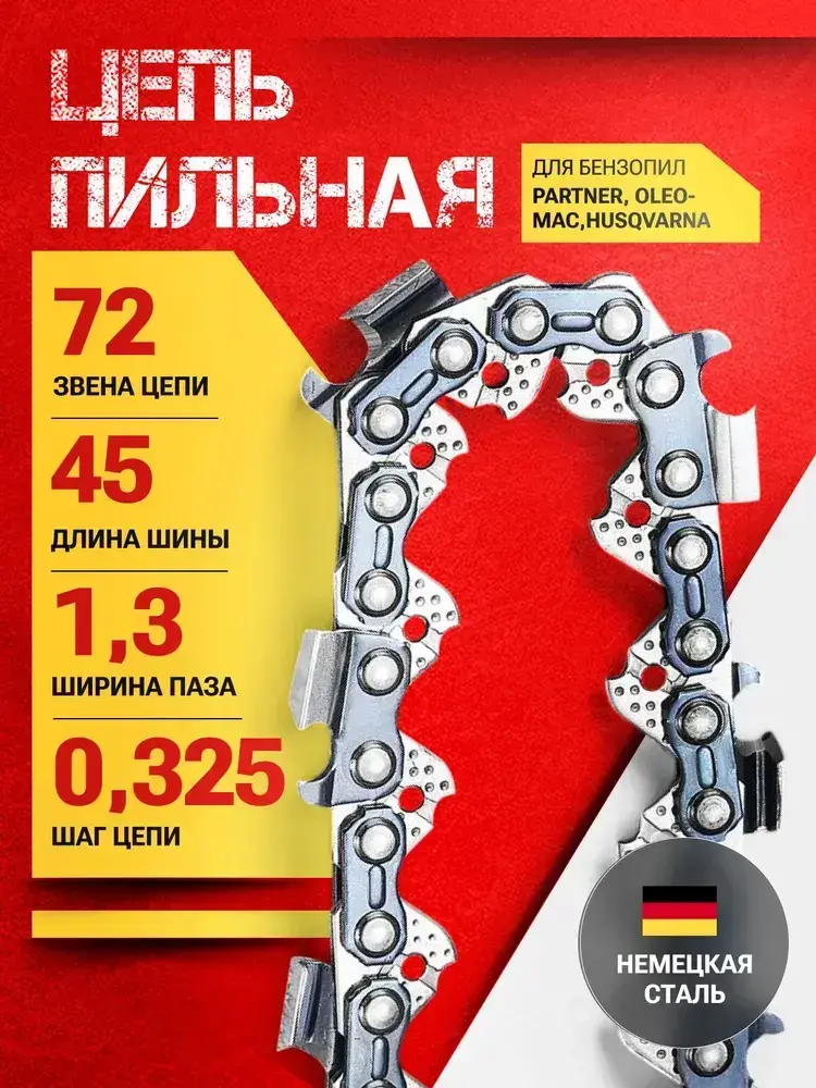 Цепь для пилы, 72 звена, шаг 0,325, паз 1,3 мм