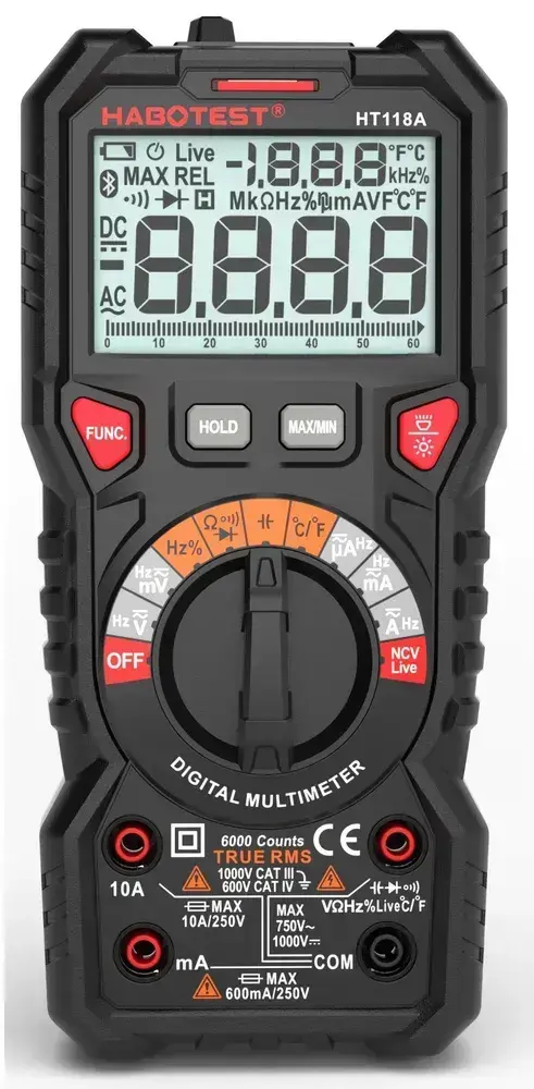 Цифровой мультиметр HT118A Habotest автомат емкость частота температура поиск проводки ток фаза фонарик подсветка True RMS