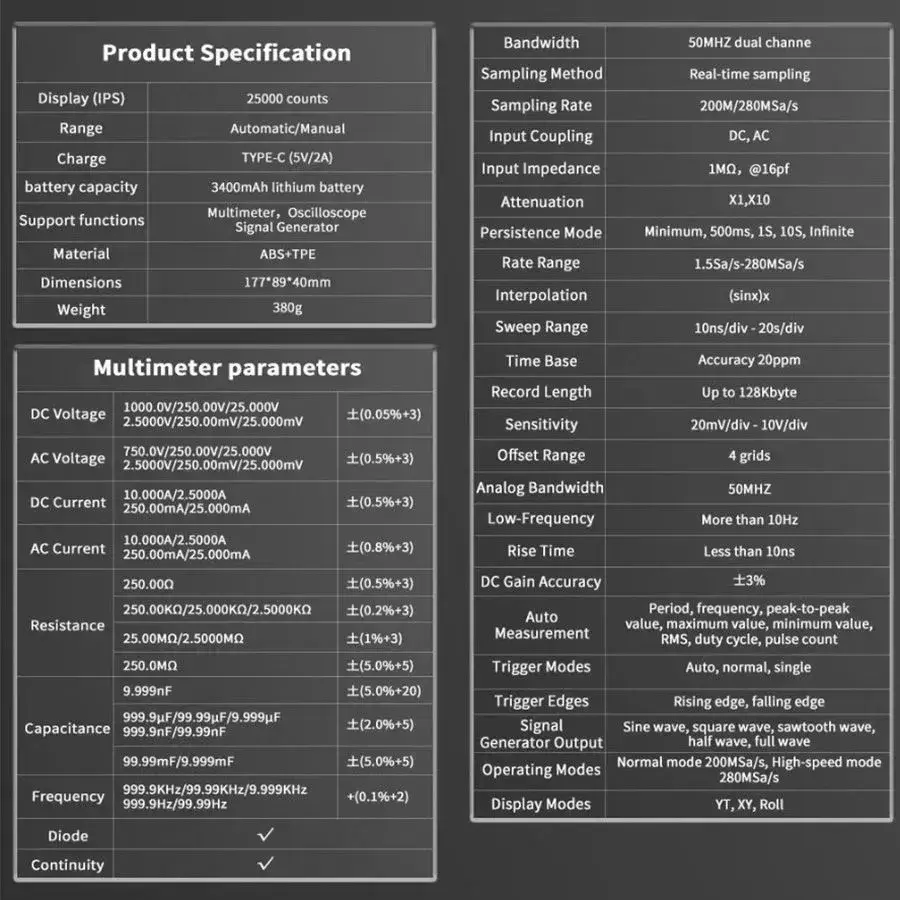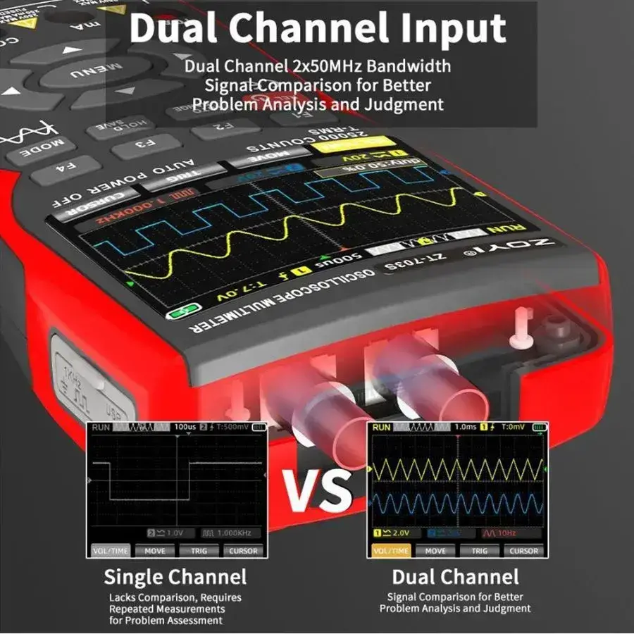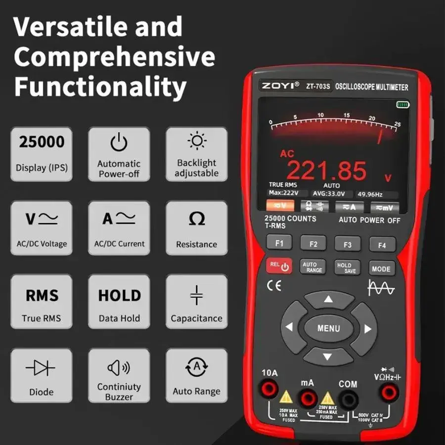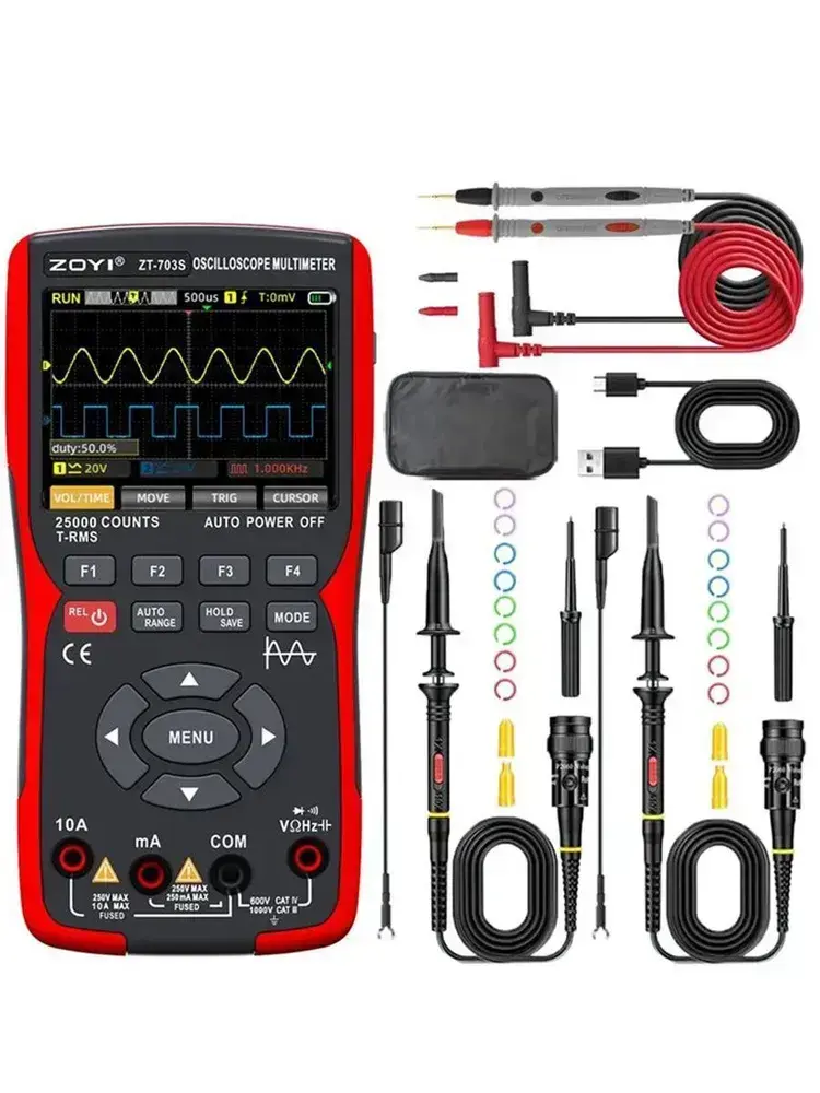 Цифровой мультиметр ZOYI ZT-703S двухканальный 50 МГц*2 /250 МС/с переменного/постоянного напряжения тока Ом частоты диодов сопротивления емкости