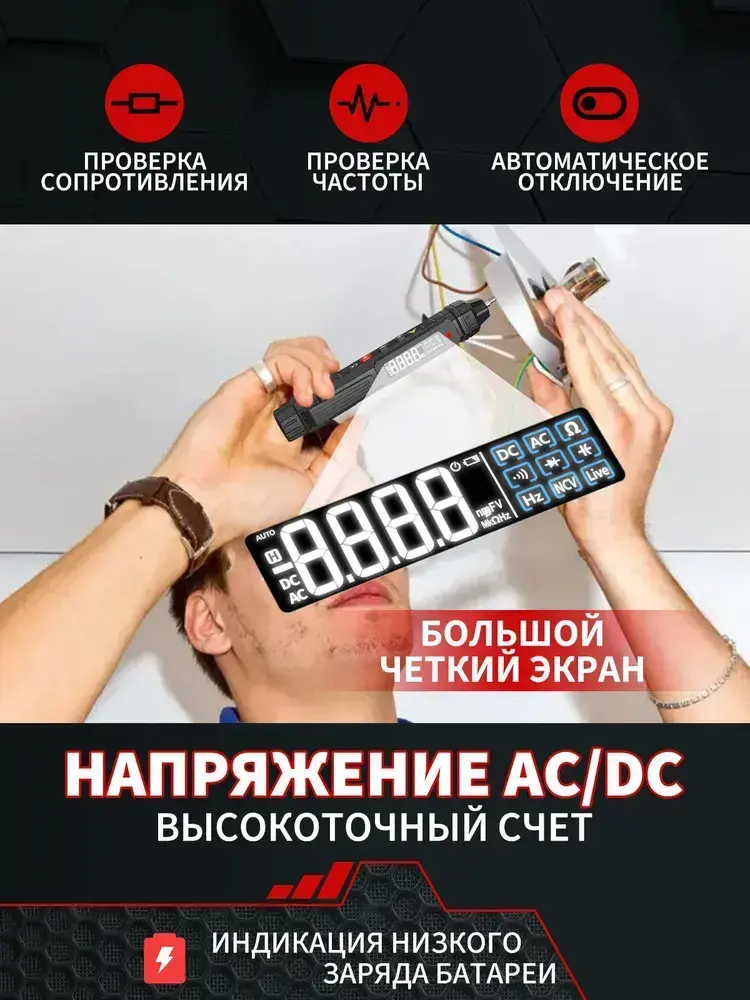 Цифровой ручной мультиметр, профессиональный прибор с ручным подсчетом 4000 ом, бесконтактный автоматический измеритель напряжения переменного/постоянного тока, тестер диодов