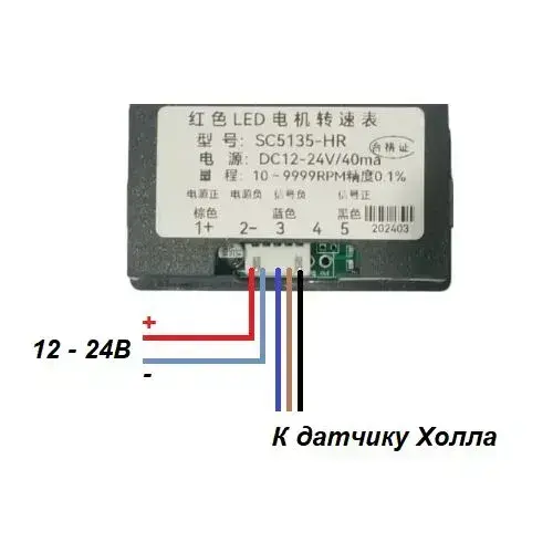 Цифровой тахометр, с датчиком Холла, 12 - 24 В постоянного тока, дисплей зелёный