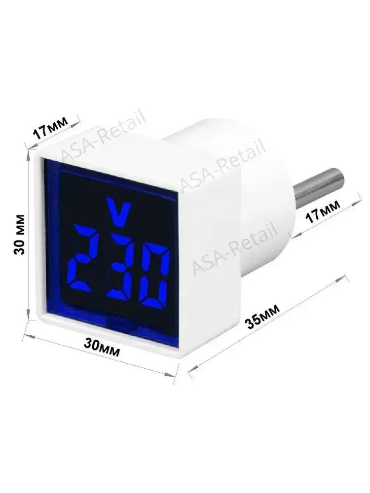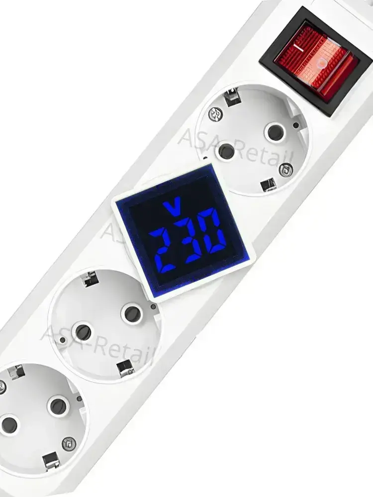 Цифровой вольтметр переменного тока бытовой сети в розетку 220В, синий дисплей