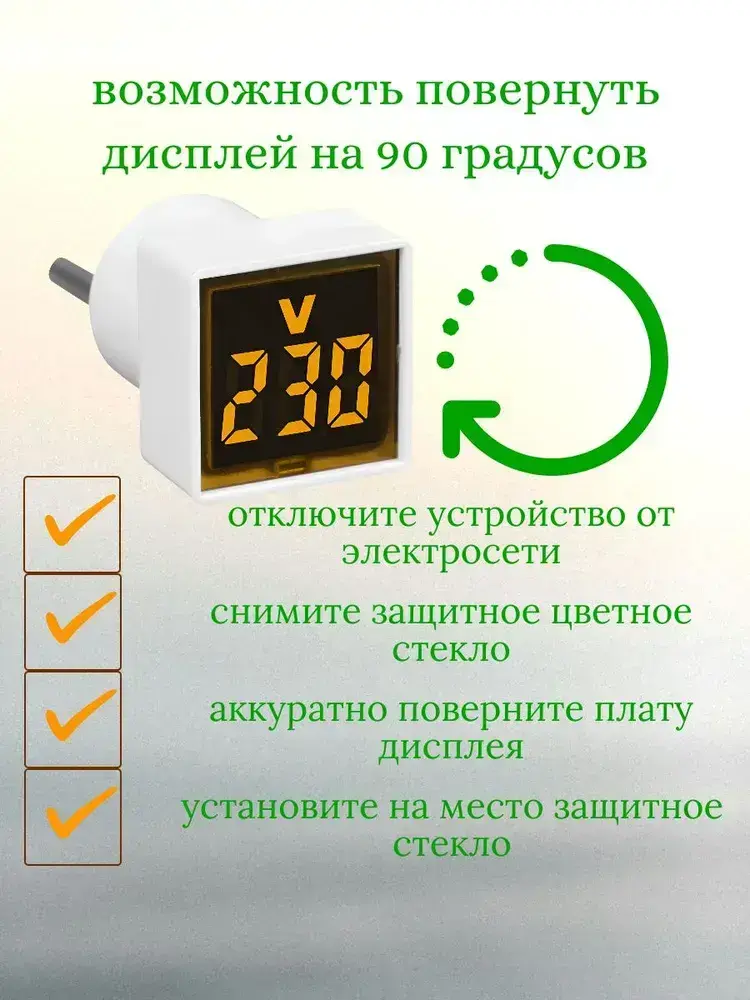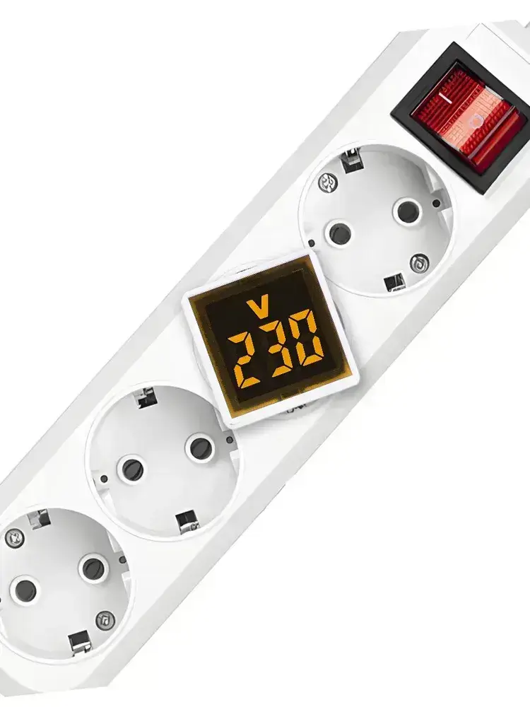 Цифровой вольтметр переменного тока бытовой сети в розетку 220В, жёлтый дисплей