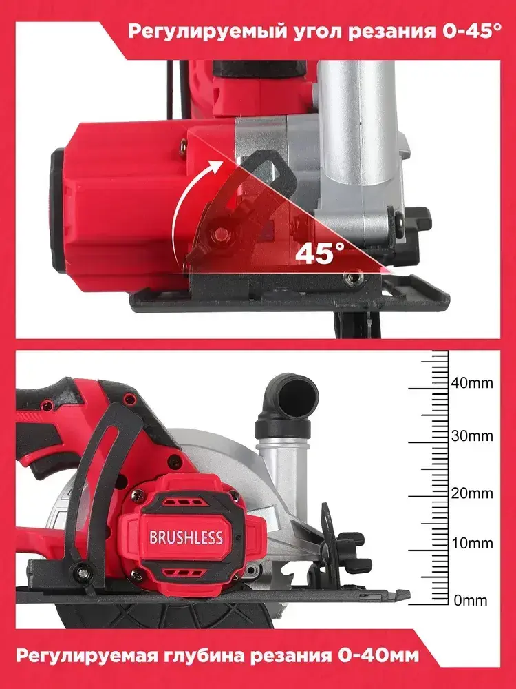 Циркулярная пила аккумуляторная , 6500 об.мин/Пила циркулярная дисковая (21 V, 150 мм) аккумуляторная 2 акб 6,0 Ач