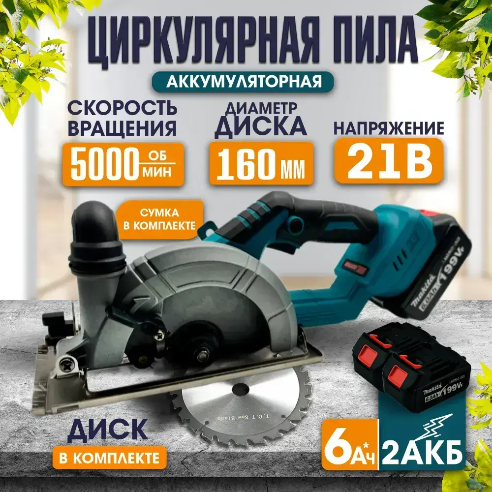 Циркулярная пила Makita 21В + 2АКБ + Сумка для хранения, пила торцовочна