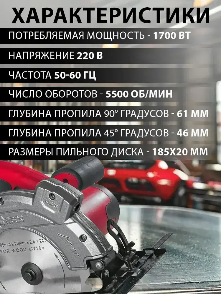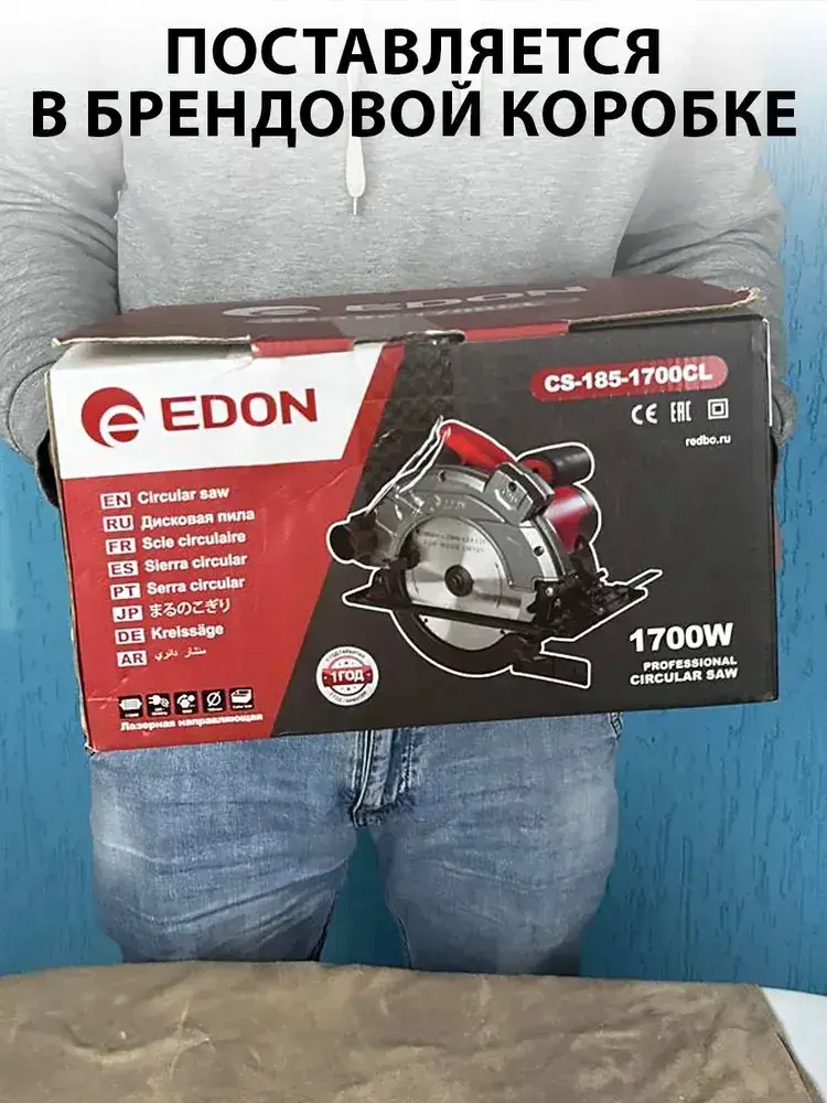 Циркулярная пила сетевая (дисковая) EDON Laser 1700Вт, 185мм диск, лазерный указатель