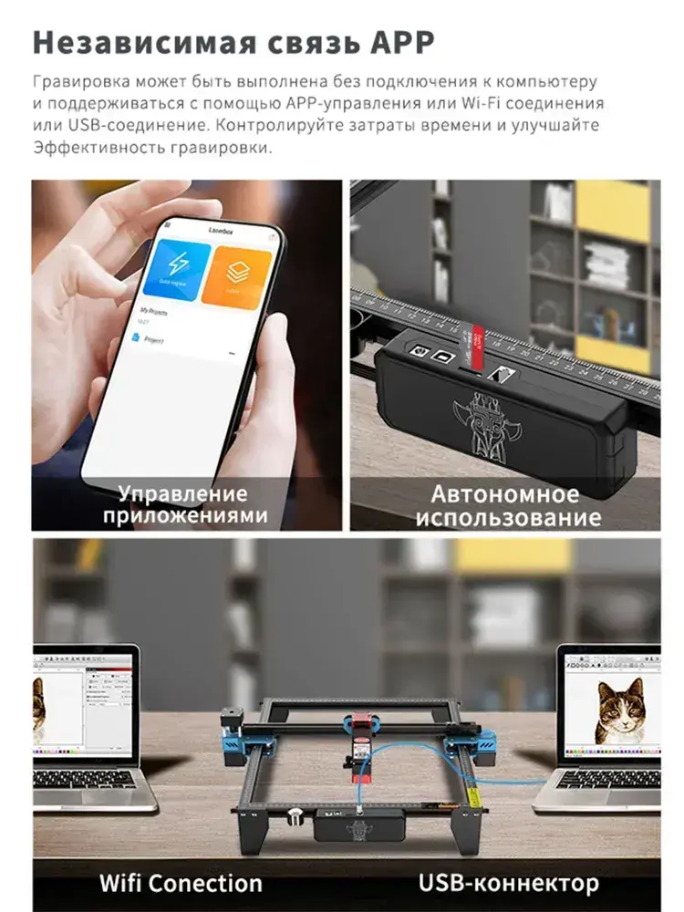 Twotrees TTS-10 PRO Лазерный гравировальный станок 80Вт с мощностью лазера 10Вт для резки Деревянная доска акриловая станок CNC графическим, контурным и пиксельнным режимом гравировки