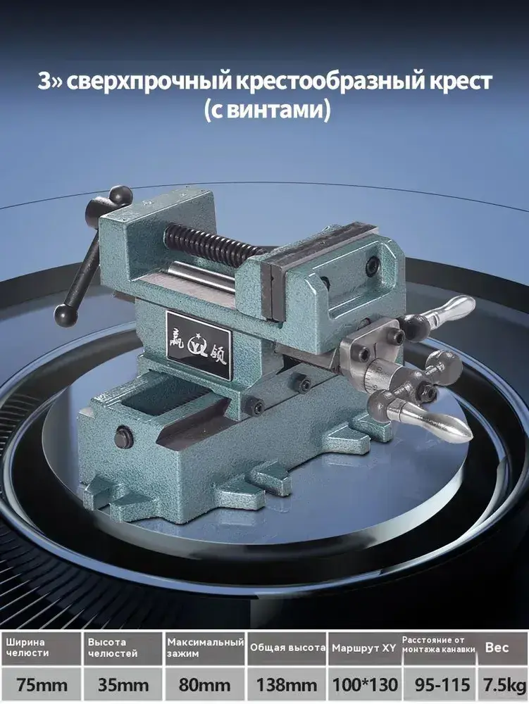 Тяжелый прецизионный крестовой тисковый стол 3 дюйма для сверлильного станка, превращающийся в фрезерный, с двусторонним движением, с винтами в комплекте