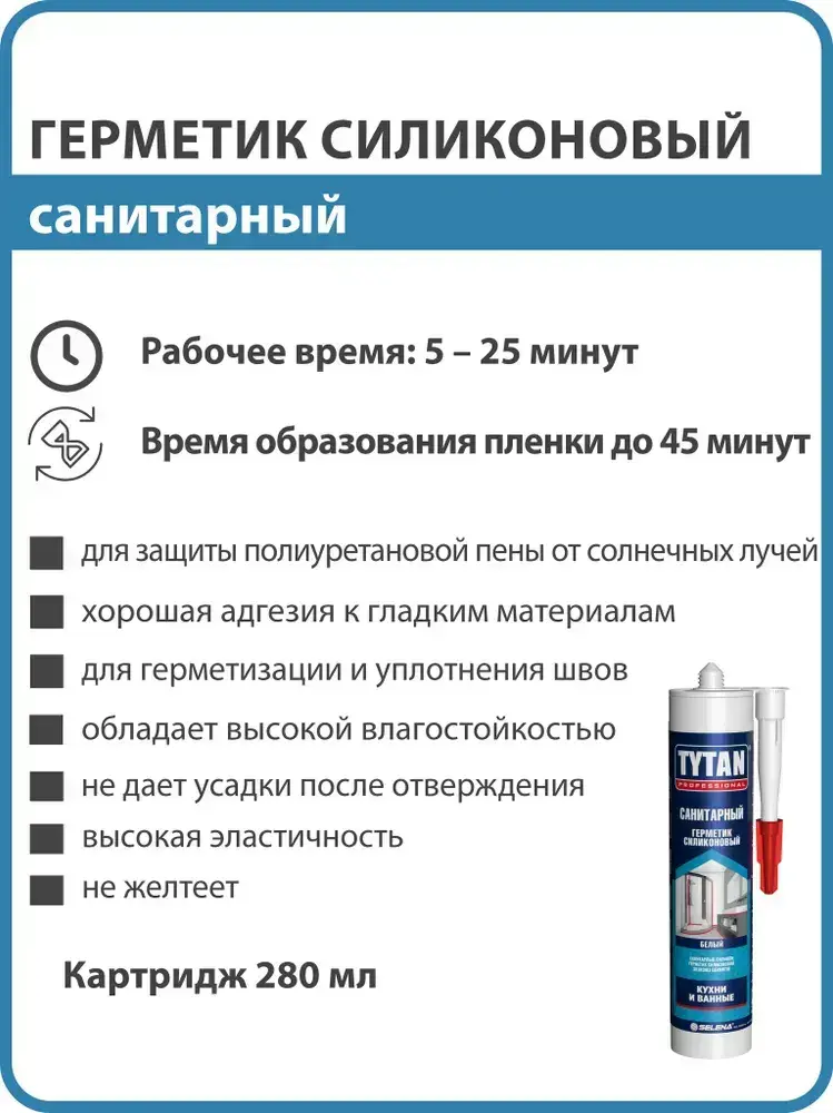 Tytan Professional Герметик санитарный силиконовый, белый 280 мл