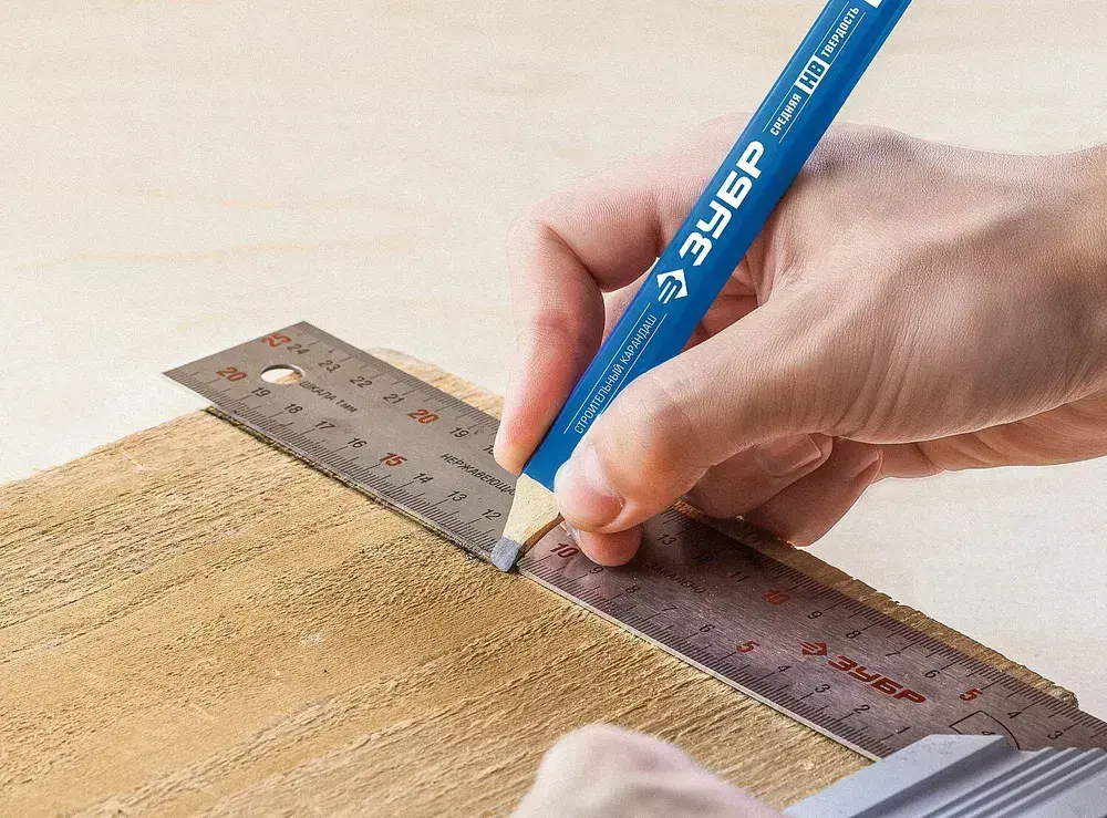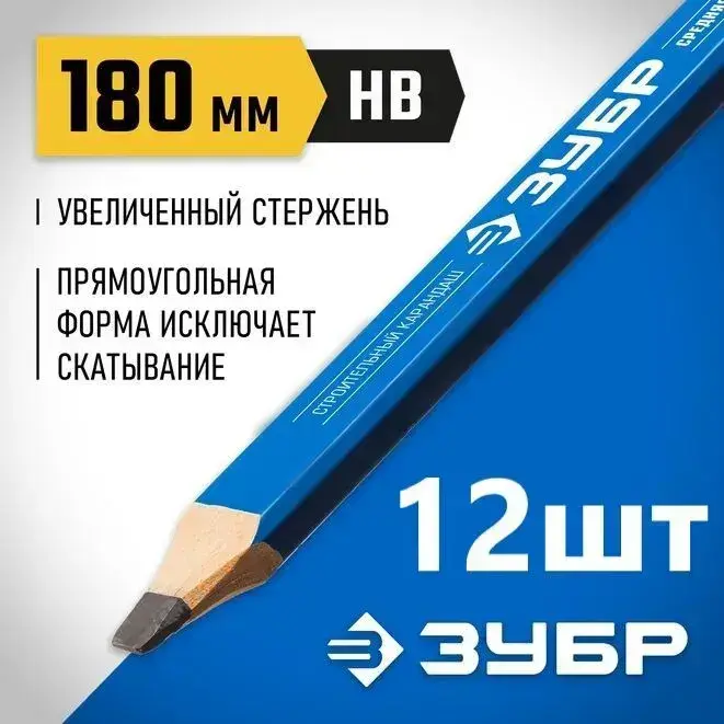 Удлиненный строительный карандаш плотника ЗУБР, HB, 180мм, 12шт, утолщенный стержень 3*6 мм, КСК