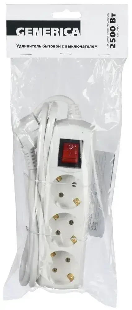 Удлинитель 3-мест 7м ПВС 3*1 белый выкл GENERICA