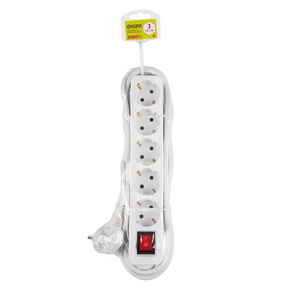Удлинитель бытовой ФАZA с заземлением и выключением 5 гнезд 3 метров FTS-05-300