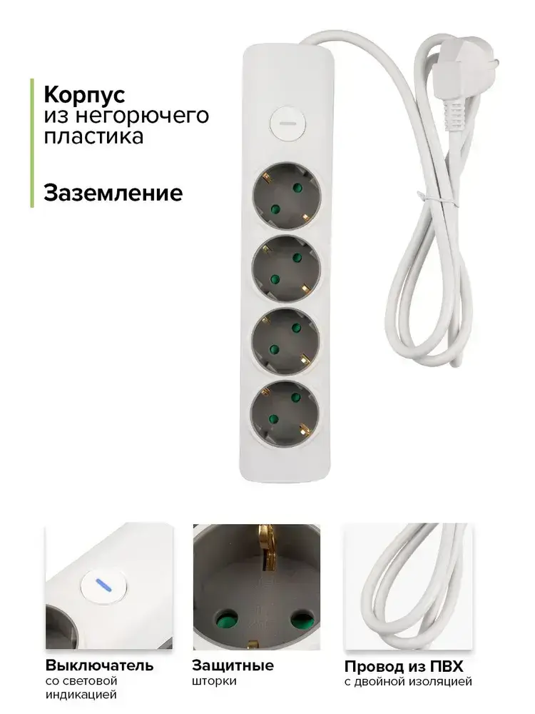Удлинитель бытовой с заземлением и выключением Jazzway ET-04-300W