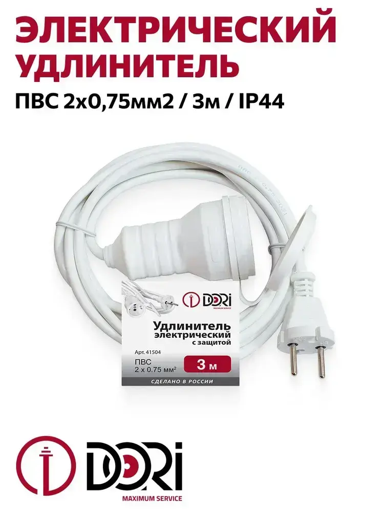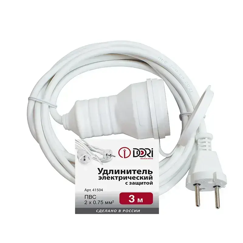 Удлинитель электрический DORI с защитой от влаги (3 м, ПВС 2х0,75 мм2, IP44)