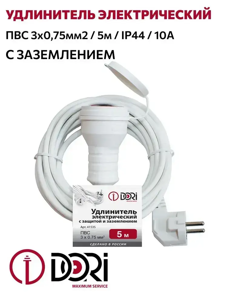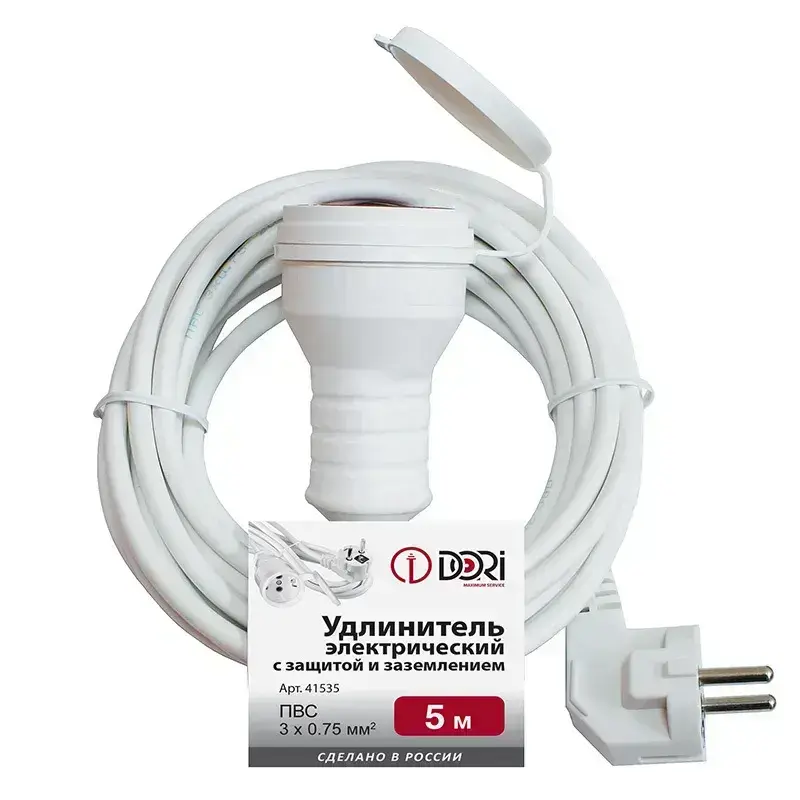 Удлинитель электрический DORI с защитой от влаги (5 м, ПВС 3х0,75 мм2, IP44)