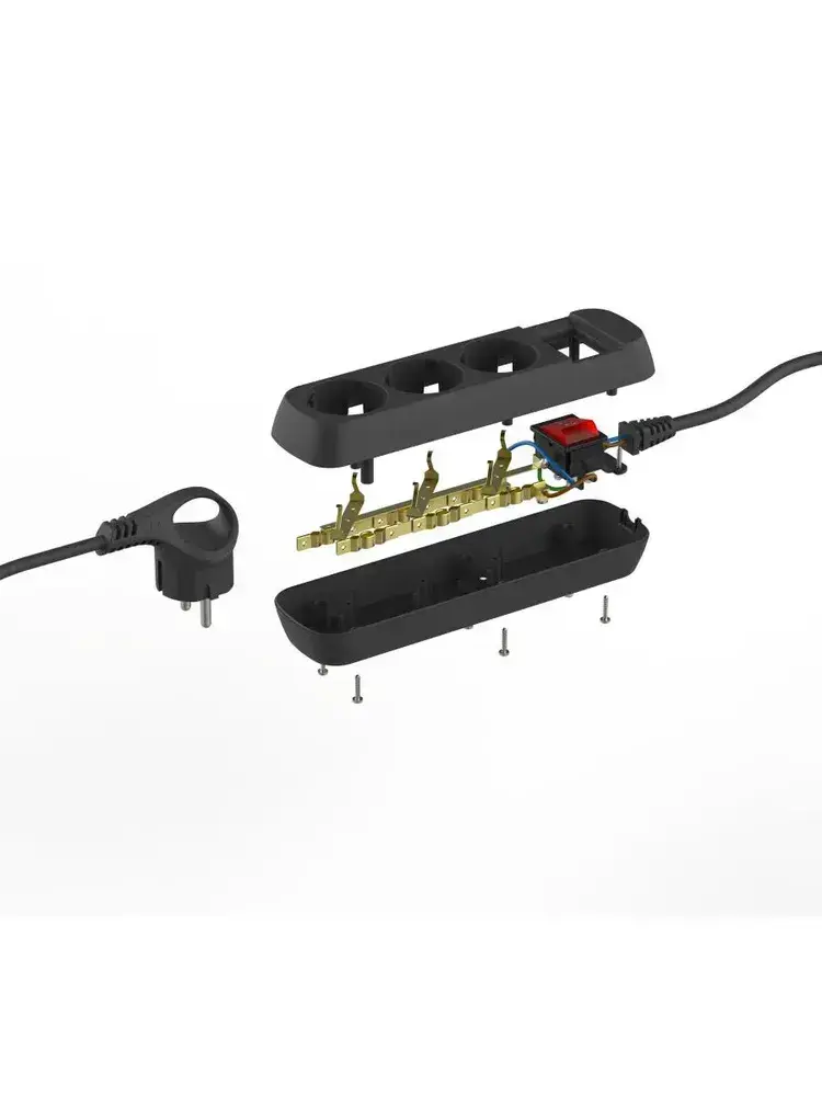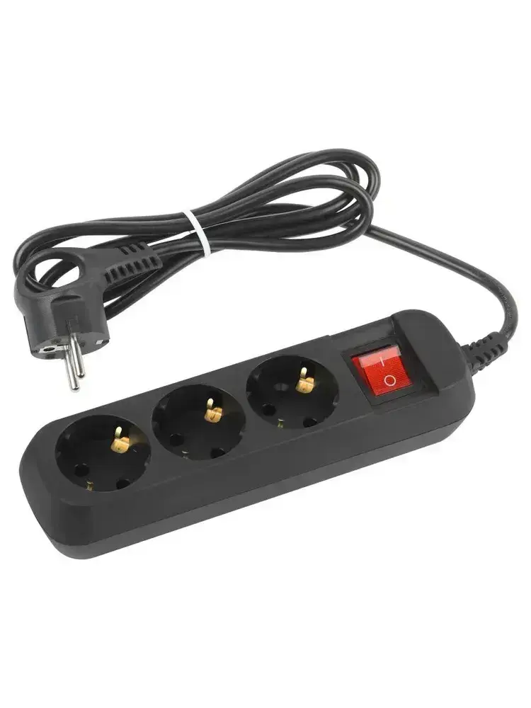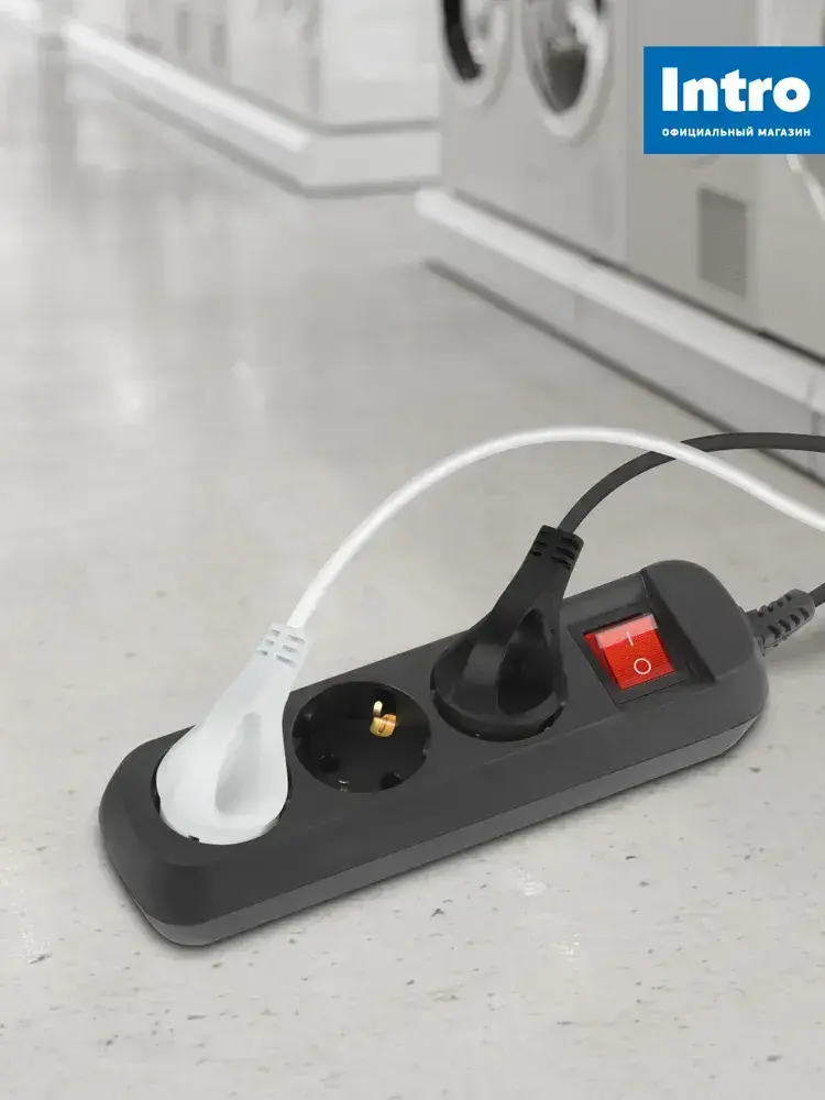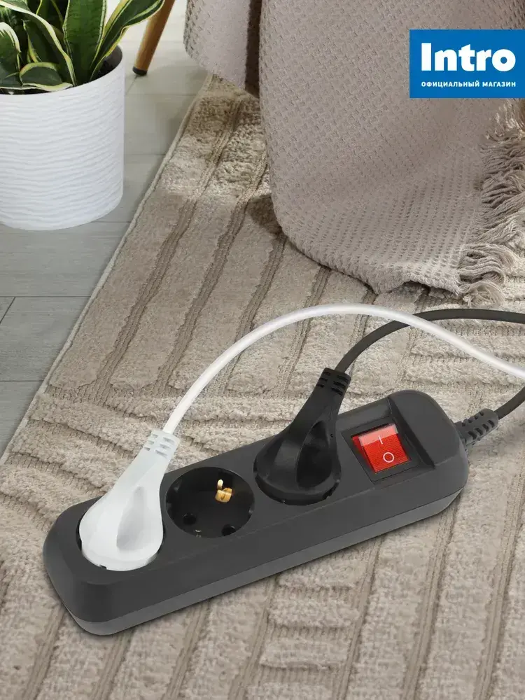 Удлинитель электрический Intro UES350-B с заземлением с выключателем 3 розетки 5 м ПВС 3х0,75мм2 10А черный