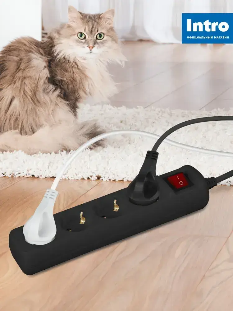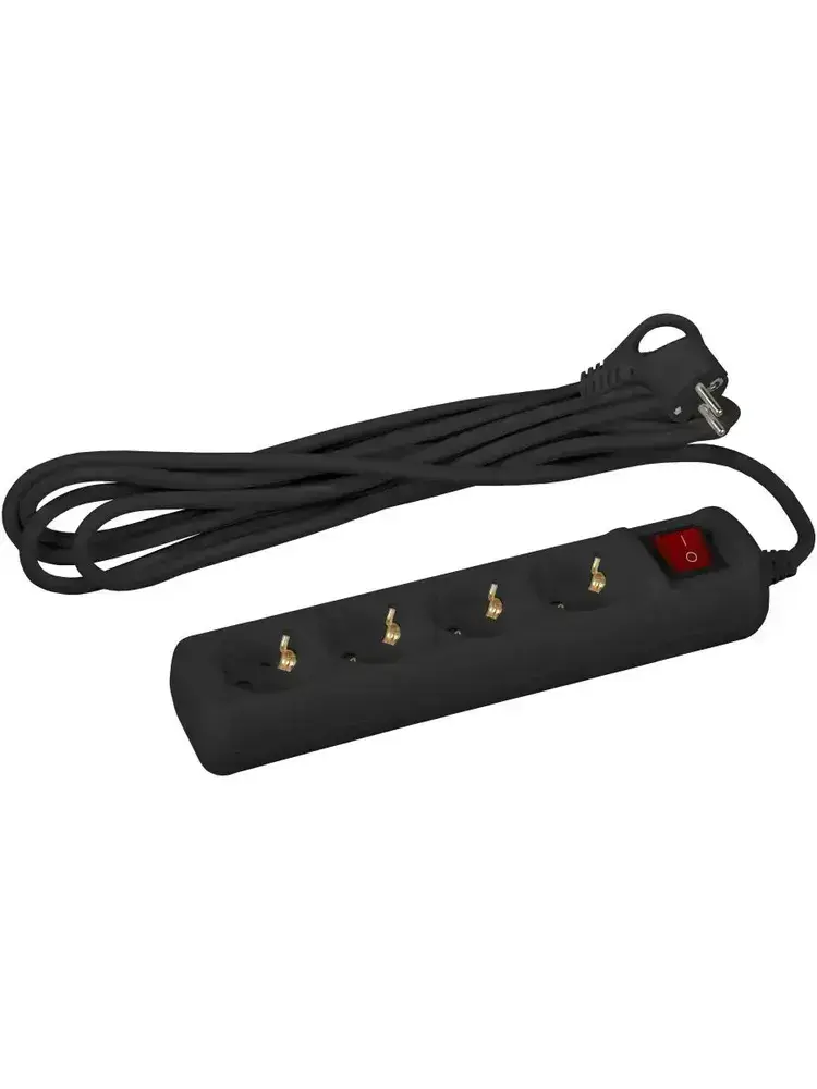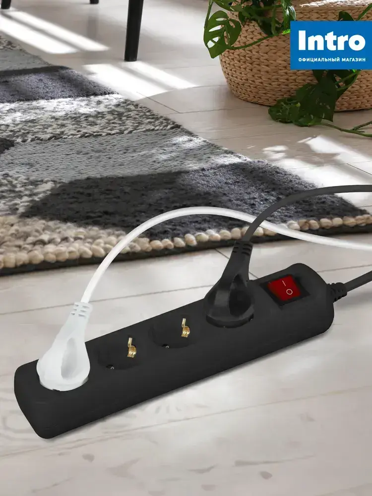 Удлинитель электрический Intro UES450-B с заземлением с выключателем 4 розетки 5м ПВС 3x0,75мм2 10А черный