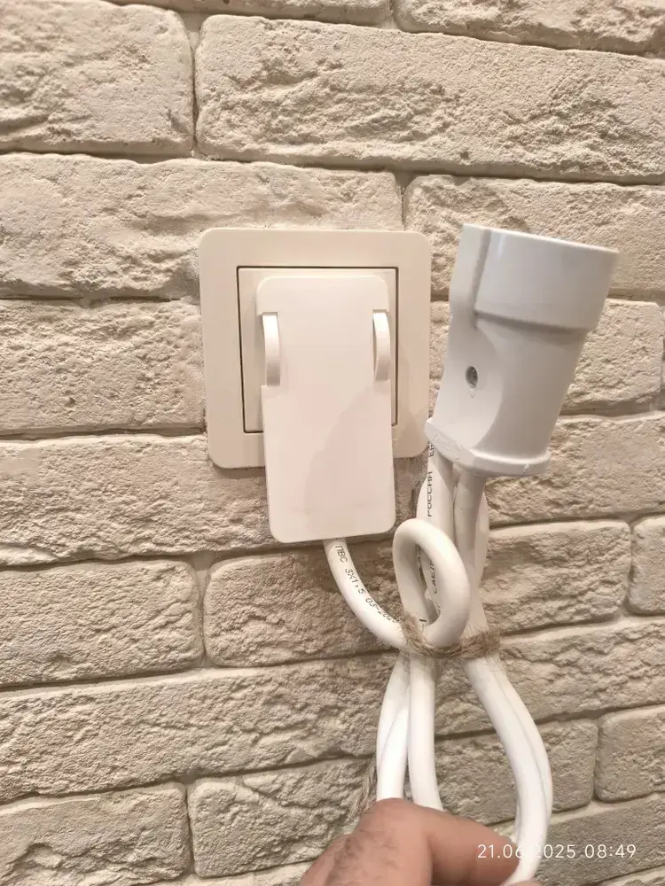 Удлинитель электрический с плоской, потайной вилкой (за шкаф) 1 розетк 1 Метр 3500 Ватт с заземлением