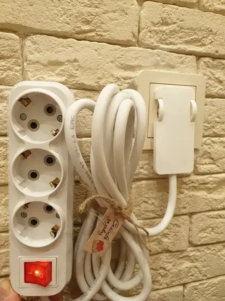 Удлинитель электрический с выключателем плоской потайной вилкой невидимкой (за шкаф) 3 розетки 1.5 метра
