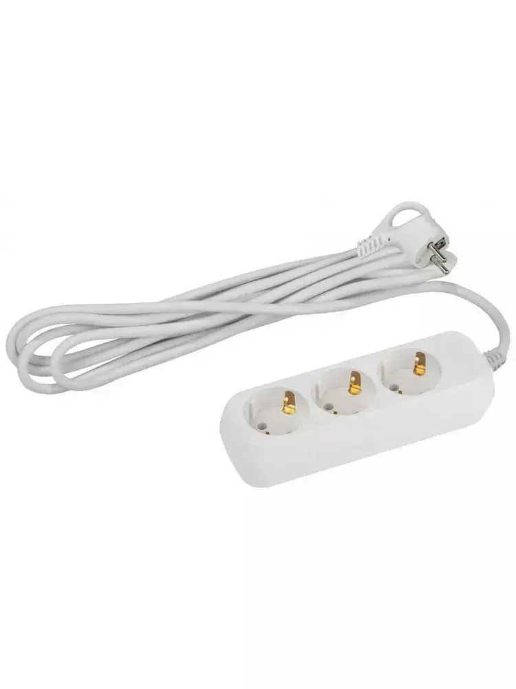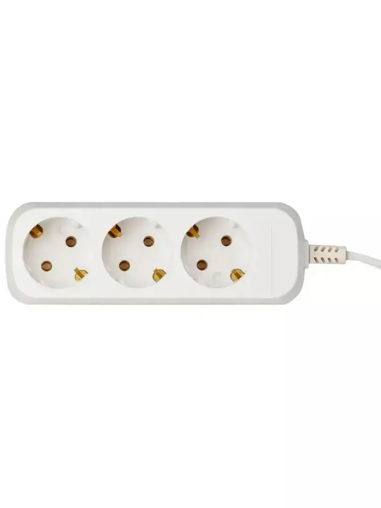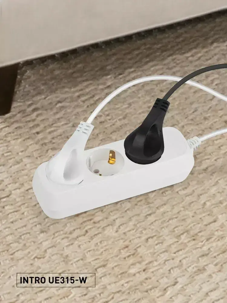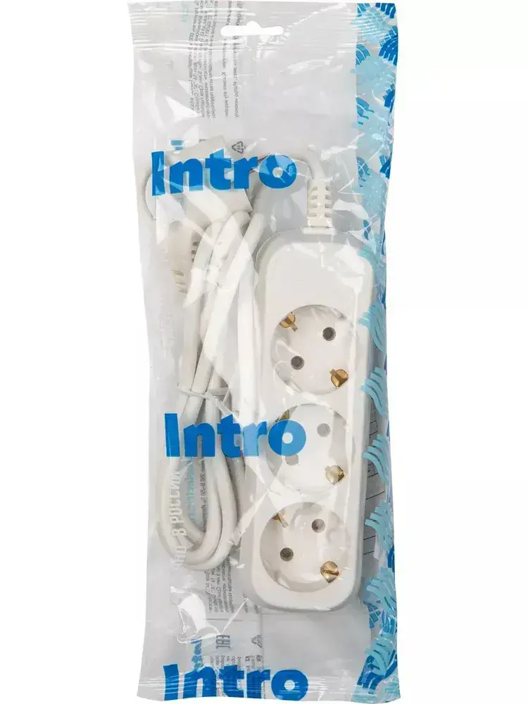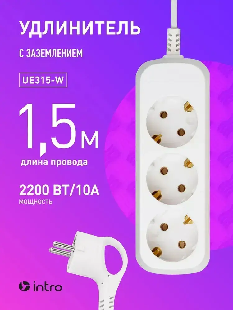 Удлинитель Intro UE315-W сетевой электрический бытовой с заземлением 3 розетки, 1,5 м, ПВС 3х0,75мм2, 10А, белый