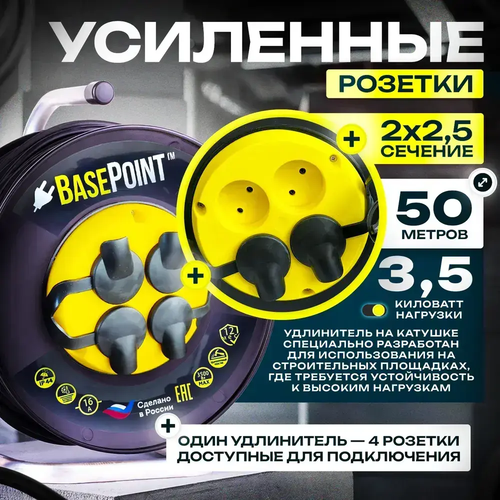 Удлинитель на катушке силовой КГтп-ХЛ 2х2.5 мм садовый строительный 50 метров
