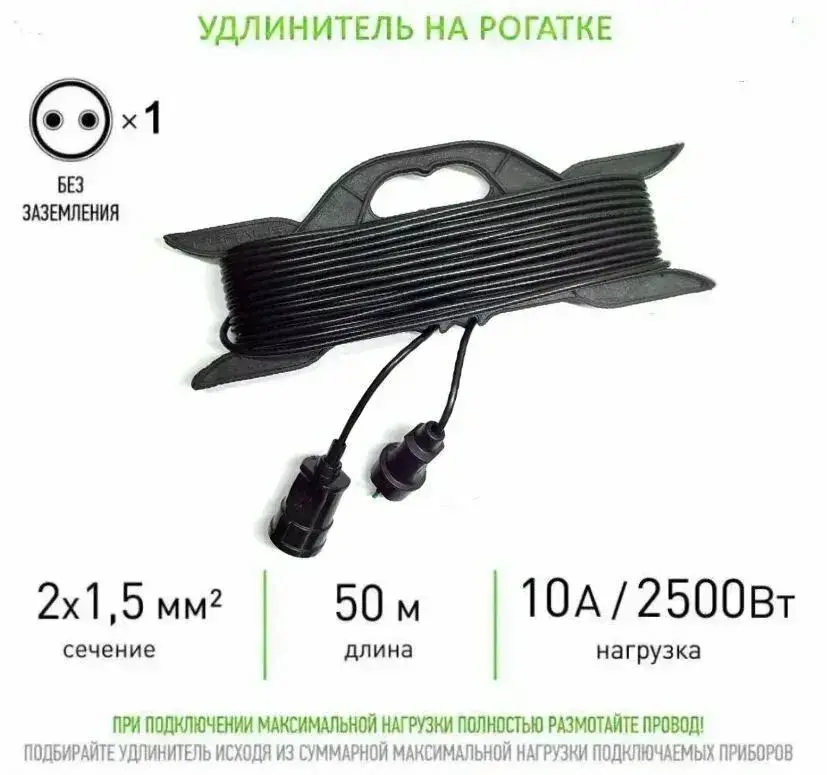 Удлинитель на рамке уличный силовой для сварки ПВС 2х1.5 мм 50 метров, 1 гнездо черный