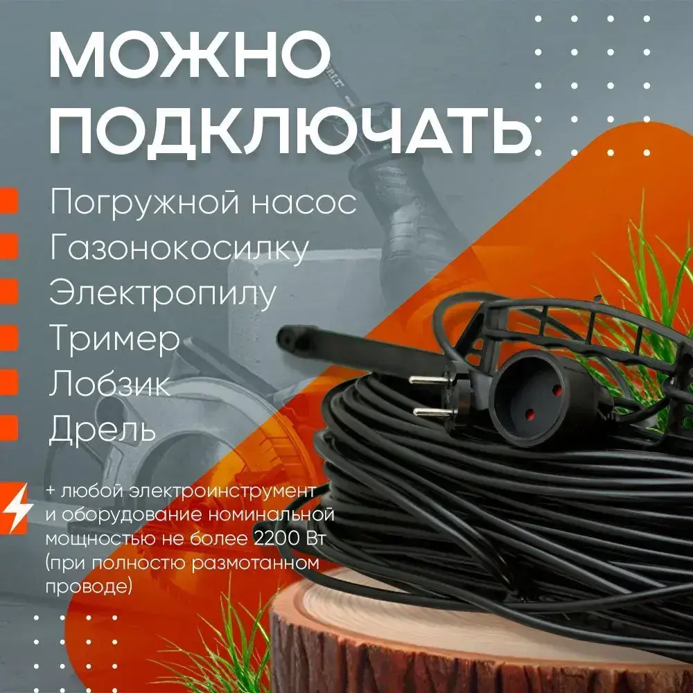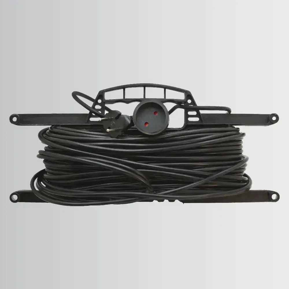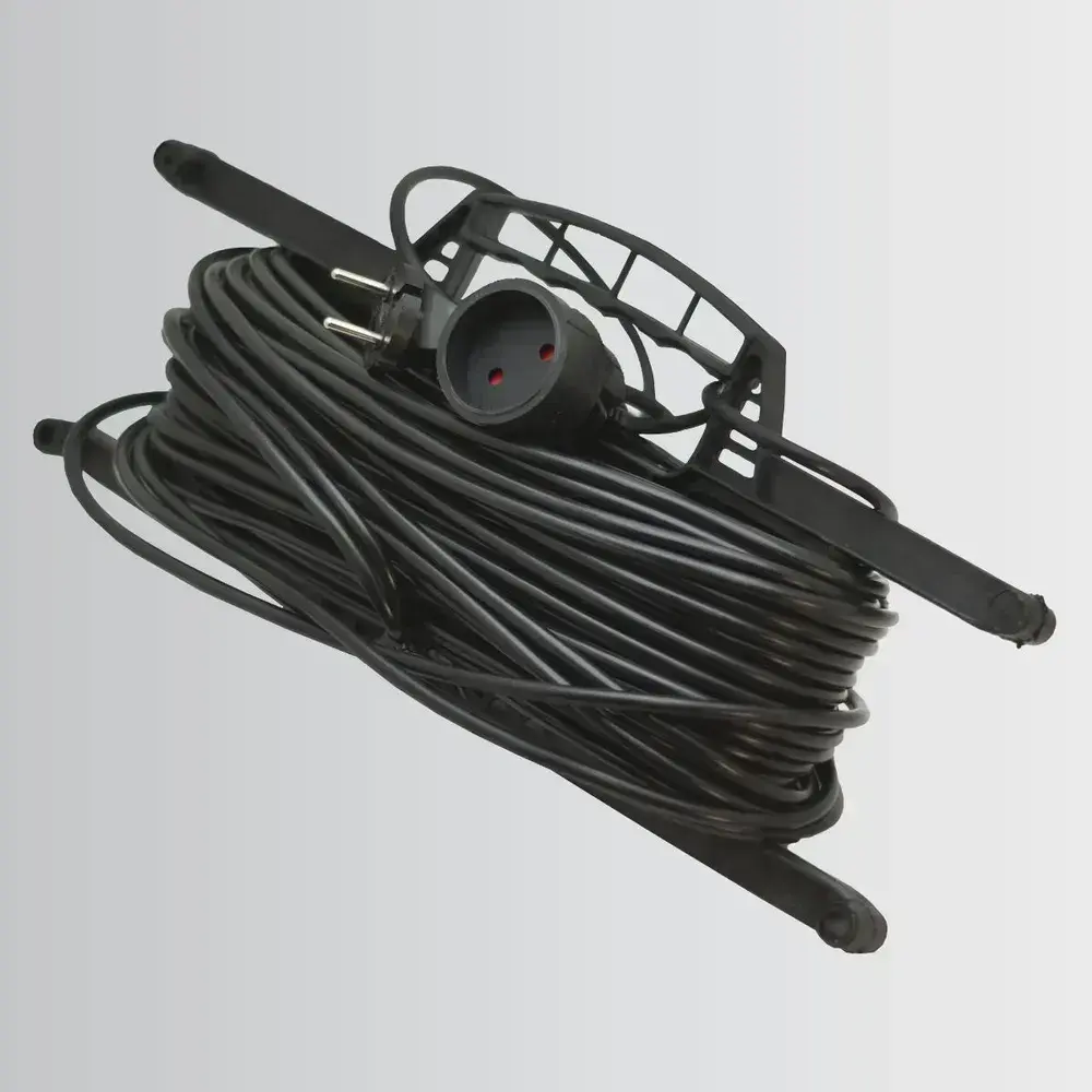 Удлинитель на рамке уличный силовой садовый ПВС 2х0.75 мм 30 метров, влагозащитный литой штепсель для газонокосилки и триммера. Строительный удлинитель 30 метров, 1 гнездо черный
