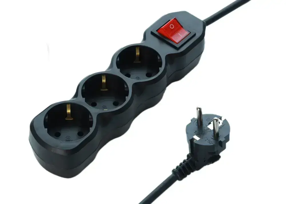 Удлинитель сетевой 1 метров, 3 розетки с выключателем